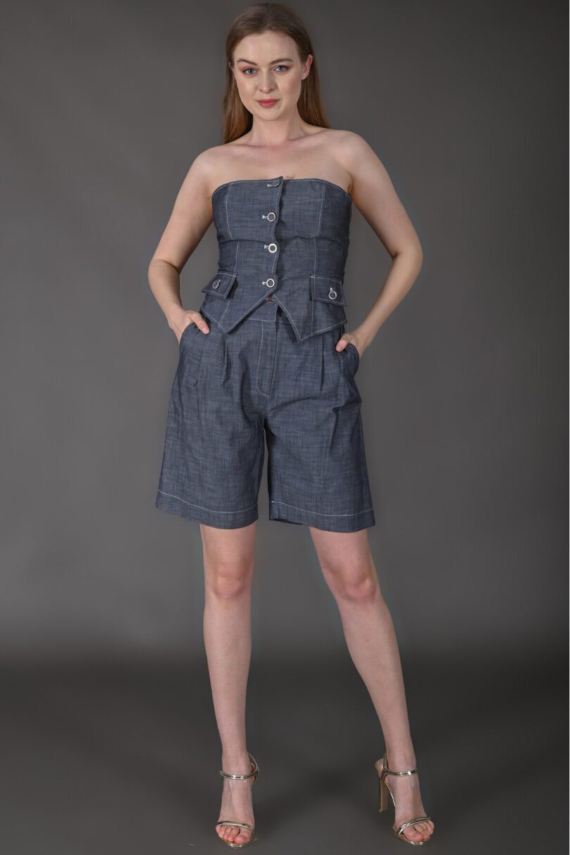 Home/Suits/Favori Tekstil Straplez Crop Ve Denim Şort Tasarım İkili Takım